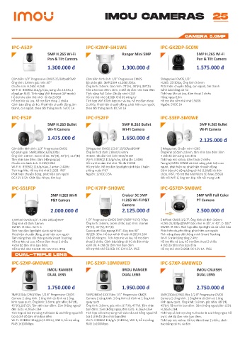 Chuẩn nén hình ảnh: H.265/H264 Hỗ trợ khe cắm thẻ nhớ: Tối đa 512GB Trang bị IMOU SENSE với tính năng phát hiện con